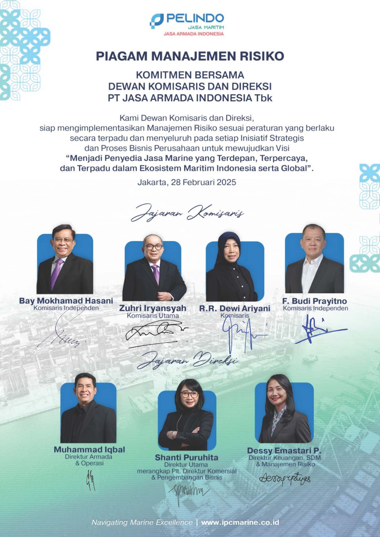 Penerapan praktik Tata Kelola Perusahaan yang Baik atau Good Corporate Governance (GCG) telah menjadi kebutuhan dunia usaha di seluruh dunia, termasuk Indonesia. GCG merupakan prinsip-prinsip yang mendasari proses dan mekanisme pengelolaan perusahaan berlandaskan kepatuhan terhadap peraturan Perundang-undangan serta cerminan dunia usaha yang memiliki etika. Pada konsep pembangunan berkelanjutan, atau sustainability development, GCG menjadi salah satu pilar utama yang diharapkan mampu membentuk fondasi iklim investasi yang sehat. Lebih jauh, GCG telah menjadi salah satu faktor fundamental bagi investor dalam menilai kinerja perusahaan yang berkelanjutan hingga masa-masa mendatang. PT Jasa Armada Indonesia Tbk terus berkomitmen dalam menjalankan prinsip-prinsip GCG sebagaimana tertuang dalam SK Nomor: HK-56/4/10/2/MS-21 tanggal 4 Oktober 2021 Tentang Tata Kelola Perusahaan yang Baik (GCG).